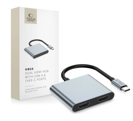 TECH-PROTECT HB08 HUB ADAPTER 4IN1 TYPE-C + USB2.0 + 2 x HDMI 4K 60HZ grigio spaziale