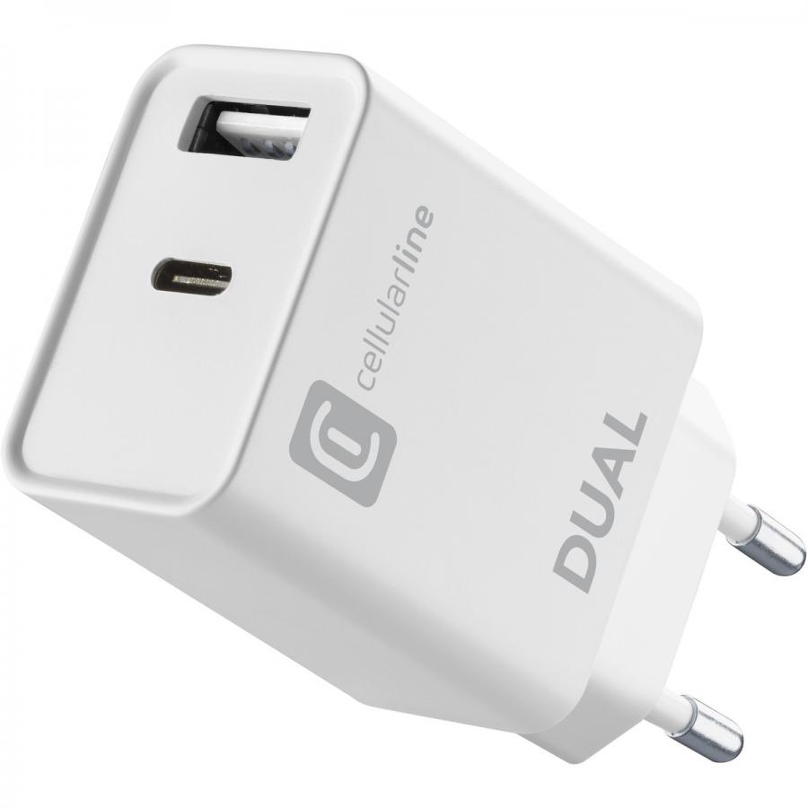 DUAL CHARGER è il caricabatterie da rete che offre la soluzione perfetta per caricare contemporaneamente due dispositivi Apple rendendo possibile utilizzare sia il cavo USB-C to Lightning contenuto nella confezione dei nuovi iPhone sia i cavi USB. Se utilizzata singolarmente, la porta USB-C 20W eroga la massima velocità di carica per iPhone 8 e modelli successivi. Con l'utilizzo in contemporanea delle due porte, il caricabatterie riduce la potenza massima erogata a 15W totali per garantire la ricarica in assoluta sicurezza.