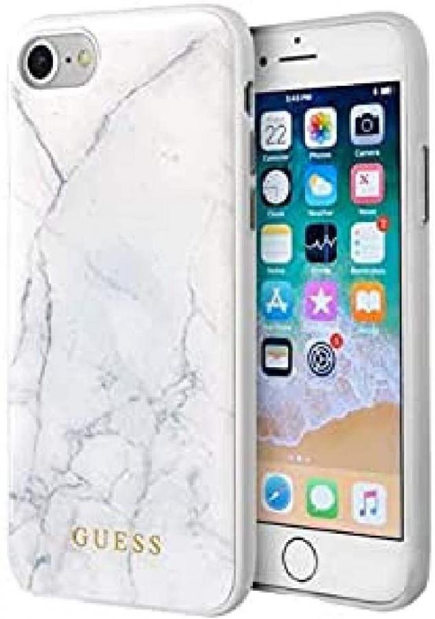 Guess Cover effetto marmo per iPhone SE 2020/8/7, colore: Bianco