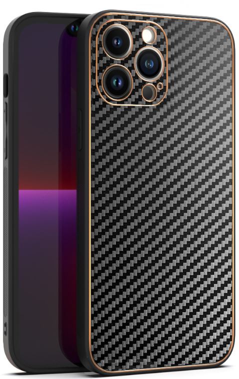 Carbon Case - è una serie di lusso di custodie realizzate in materiale TPU con una trama in fibra di carbonio. Ha una linea galvanizzata dorata sul retro e intorno alla fotocamera che le conferisce un aspetto unico. La custodia protegge il retro, i lati, la fotocamera e lo schermo dello smartphone. Con questa custodia, non devi preoccuparti del tuo telefono!
