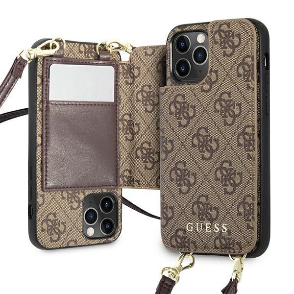 cover guess iphone 12 / 12 pro brown con tracolla e porta carte di credito