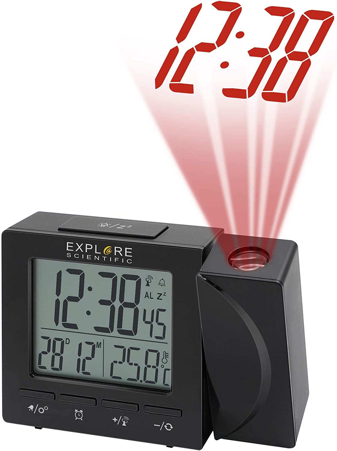 orologio a proiezione radiocontrollato previsioni del tempo e della temperatura interna e esterna nero