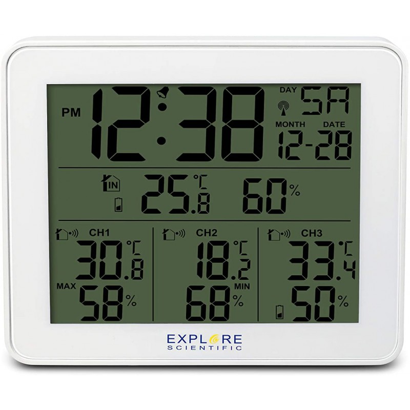 barometro,orologio radiocontrollato doppio allarme con snooze display a colori ,inclusi 3 sensori in confezione black